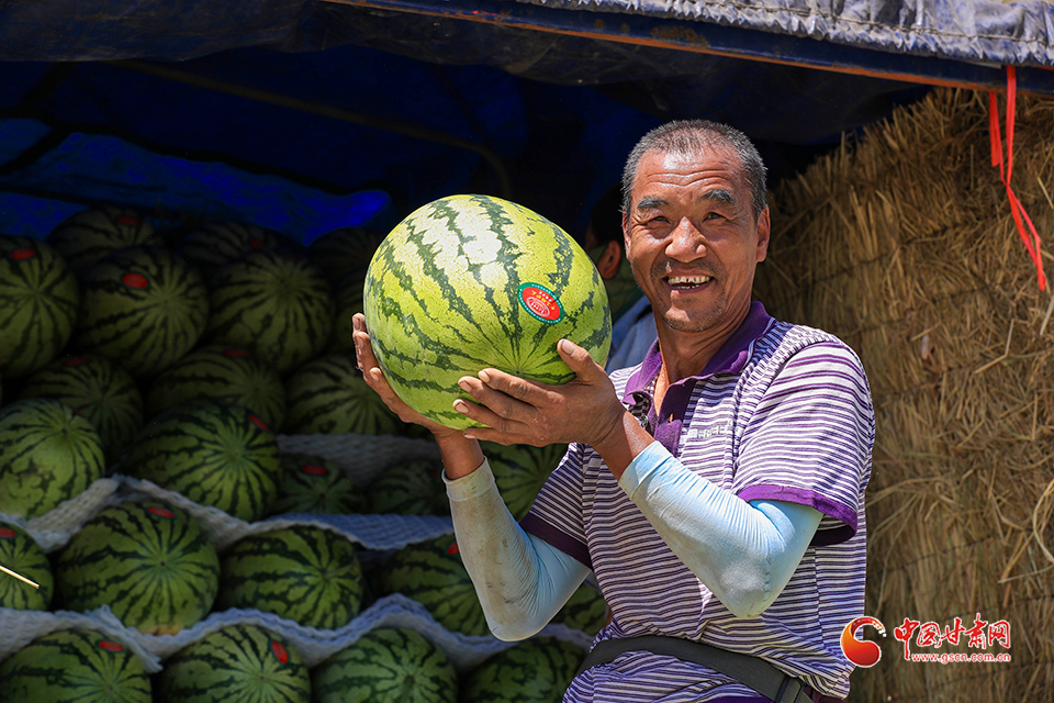 7月31日,甘肅省白銀市會寧縣土高山鄉(xiāng)種植的砂田西瓜喜獲豐收,瓜農(nóng)們忙著采收、搬運、裝車外運,“搶鮮”上市銷售。