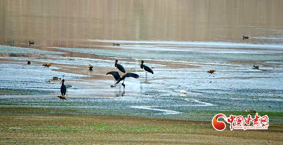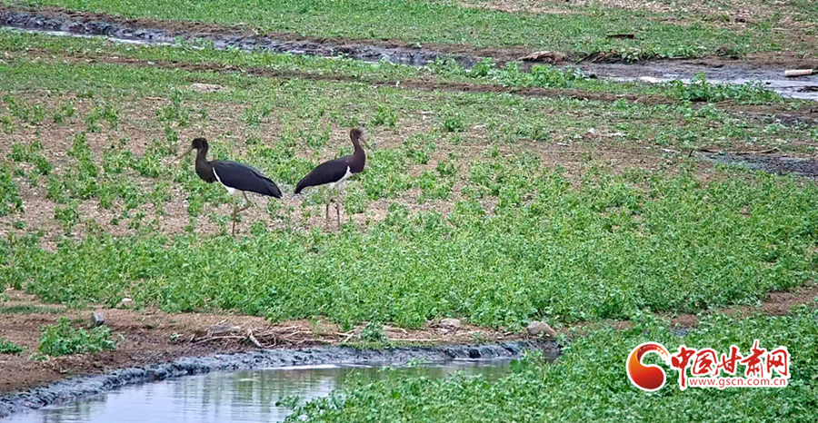 近日,山丹縣濕地保護(hù)站工作人員在開展候鳥監(jiān)測(cè)工作時(shí)發(fā)現(xiàn)14只被稱為“鳥中大熊貓”的黑鸛。