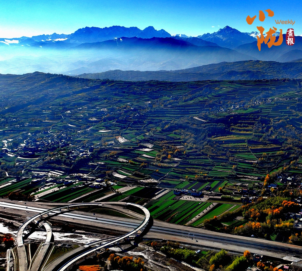 百里平川襯托著綿延群山,一邊是麥?zhǔn)蝻h香的一個(gè)個(gè)綠色盆地,一邊是披蒼著翠的太子山脈。