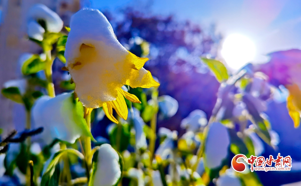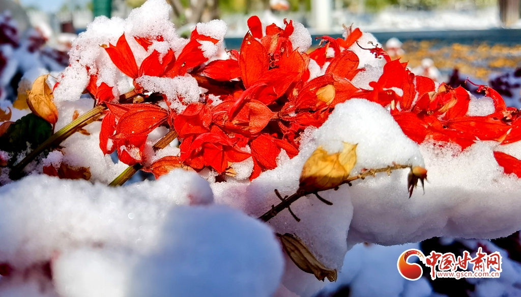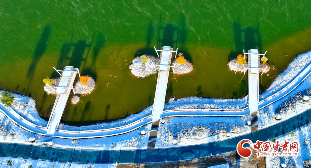 11月5日,受寒潮侵襲,甘肅省張掖市出現(xiàn)降溫降雪天氣。雪后初晴,張掖市中央文化公園內(nèi),銀裝素裹,景色迷人,宛若畫卷。