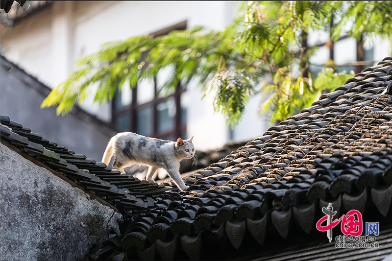 在毛孩子眼里,這就是包容一切活動的「游樂場」,片片青瓦上留下梅花印?;蛟S你也該往古鎮(zhèn)的屋頂上瞧,檐角翹伸、清風(fēng)古韻,讓人心曠神迷?;蛲侵回堃粯优噬细咛?,推窗看那水那橋,那木門青瓦,就是江南水鄉(xiāng)的具象。