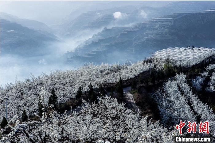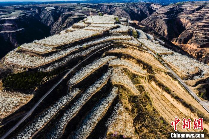 “中國梨都”山西隰縣萬畝梨花怒放如玉似雪