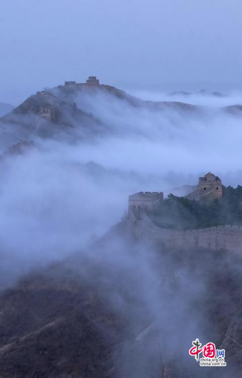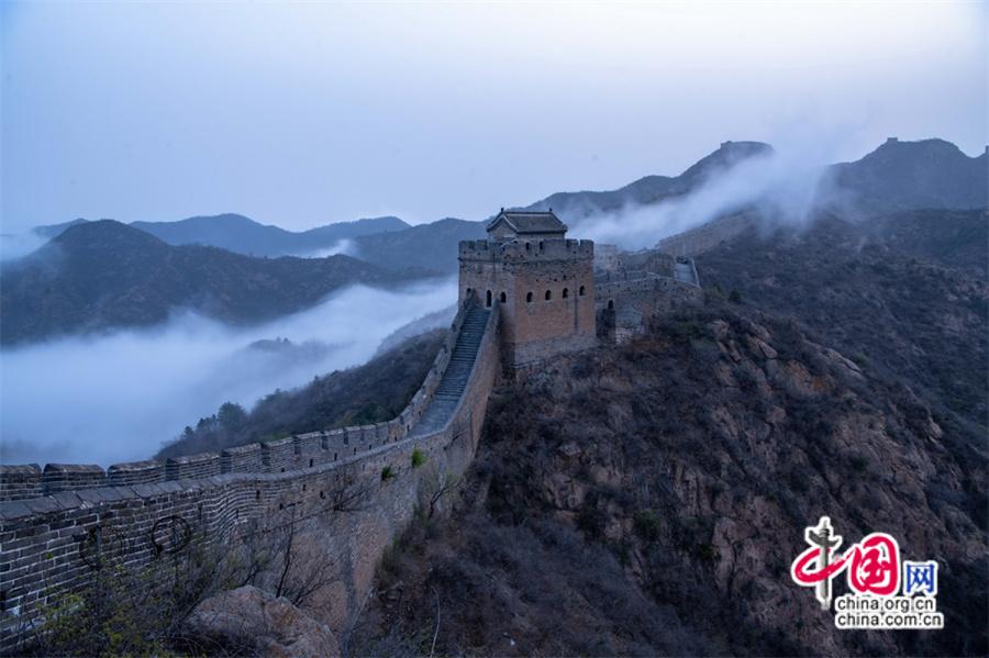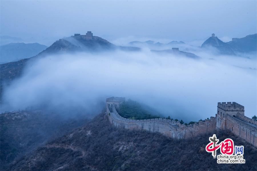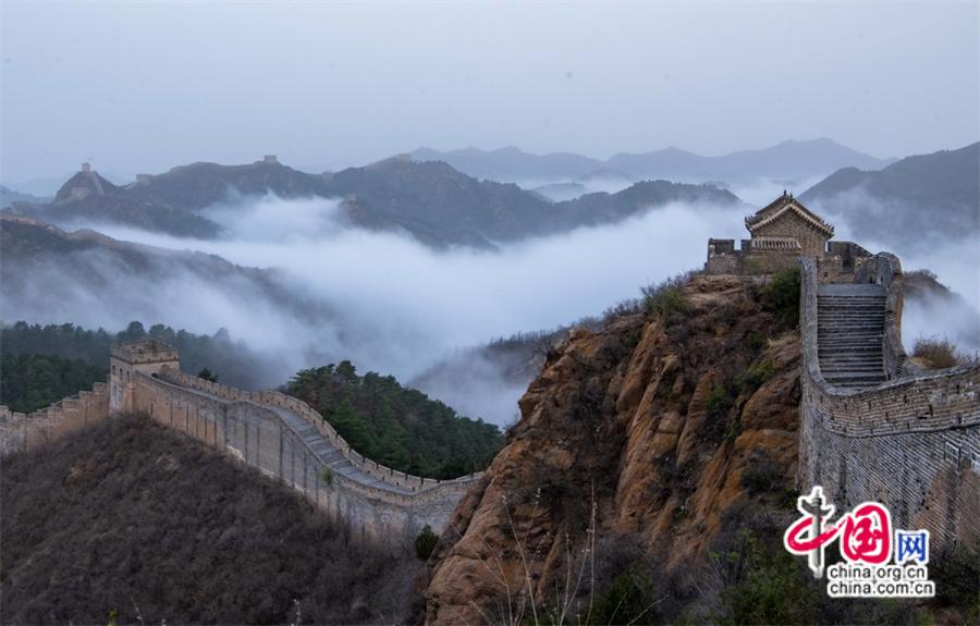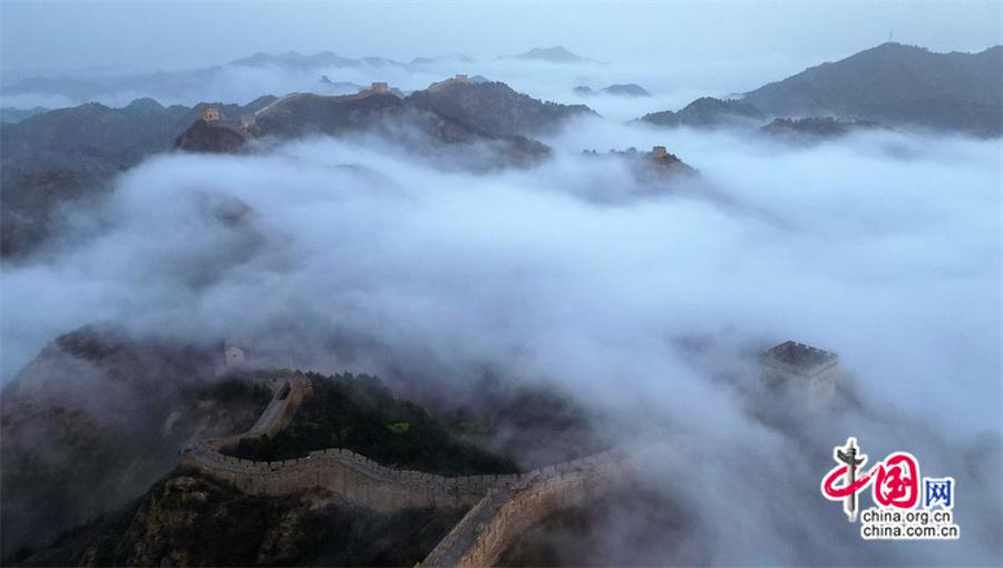 春風(fēng)輕撫金山嶺, 茫茫云海與蜿蜒長(zhǎng)城相互映襯,構(gòu)成了一幅幅壯美畫卷。