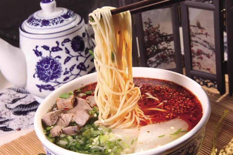 一碗熱氣騰騰的牛肉面,搭配鹵蛋和一盤牛肉,熱量雙倍的碳水誰能不愛。蘭州牛肉面,起源于清代嘉慶年間,后經(jīng)傳承發(fā)展,以“一清(湯)二白(蘿卜)三紅(辣子)四綠(香菜蒜苗)五黃(面條黃亮)”等形式,統(tǒng)一了蘭州牛肉面的標準。一塊小小的面團,在蘭州牛肉面師傅手里可以現(xiàn)拉出九種面型,從細到粗、從窄到寬分別為毛細、細、二細、三細、二柱子、蕎麥棱、韭葉、薄寬、大寬。過去還有一種面型叫“工字面”,橫截面是火車鐵軌形狀,已經(jīng)基本失傳了。推薦蘭州人吃牛肉面的經(jīng)典吃法“肉蛋雙飛”(“肉蛋雙飛”就是在原有的牛肉面上加一顆鹵蛋和一份牛肉)。