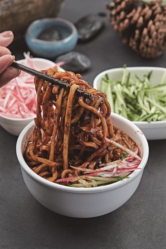 和老北京炸醬面相比,蘭州炸醬面雖然少了時令蔬菜,但是肉醬分量很足,這絕對代表了蘭州人的實在和“碳水之都”的誠意。一口裹上醬汁的面條可以直接“擊碎”饑餓。蘭州人做炸醬用現(xiàn)成的面醬加上肉末、蔥等作為主料,再配以農(nóng)家常見的蔬菜丁,把肉末上鍋烹炒后放入蔥末,再添加調(diào)料炒到半熟加入適當?shù)乃每旎馃?,炸醬中加淀粉勾芡使炸醬變得柔滑濃香,再配上筋道的手工拉面澆上炸醬,加上辣椒油,淋一點醋那就濃香四溢了。