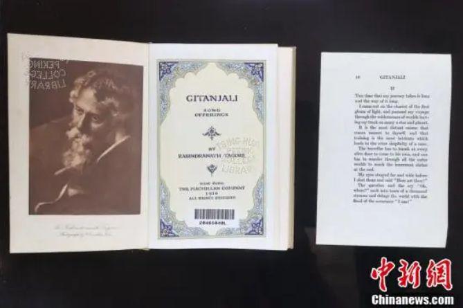圖為清華大學(xué)圖書館收藏的紐約1916年英譯本泰戈?duì)栐娂都村壤贰V行律缬浾?nbsp;易海菲 攝
