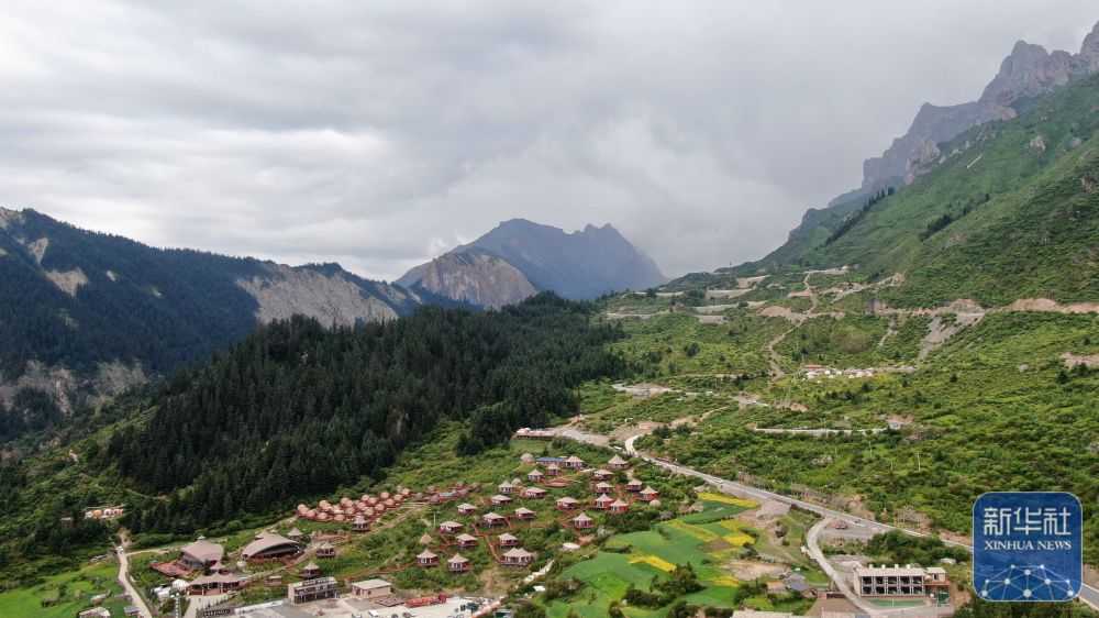 ↑ 這是6月27日拍攝的扎尕那一處帳篷營地民宿(無人機照片)。新華社記者 陳斌 攝