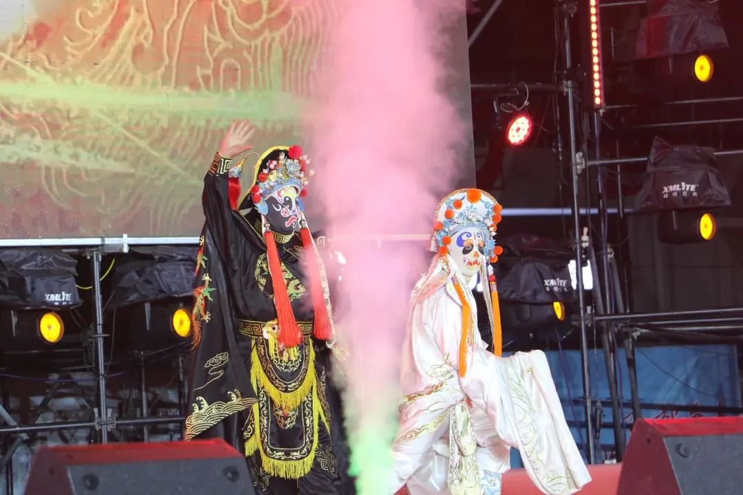 月影西斜,華燈初上。非遺花兒《上去高山望平川》音樂高亢、悠長、爽朗,情感真摯,讓觀眾領(lǐng)略到了鮮明的民族風(fēng)格、地方特色及其獨(dú)特魅力;猴王表演《金猴送?!芳尤肓藨騽』瘖y、戲劇技巧等表演手段,將祝福送給每一位觀眾;《板胡五重奏》豪放跌宕,清麗委婉,舒展愜意,優(yōu)美動人的旋律引得觀眾一次次陶醉、回味無窮……