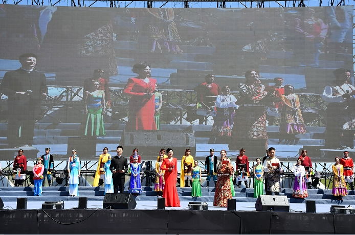 草原兒女在激昂的旋律中共同唱響草原大合唱《我和我的祖國》,感受甘南各族群眾對祖國的深深眷戀和熱愛。甘南,不僅有自然之美、和諧之美,更有人文之美,大合唱《走向復興》體現了甘南別具一格的文化底蘊,展現了甘南是長江和黃河的精彩邂逅、青藏高原和黃土高原的熱情擁抱、游牧文明和農耕文明的美麗碰撞、民俗文化和宗教文化的有機融合。