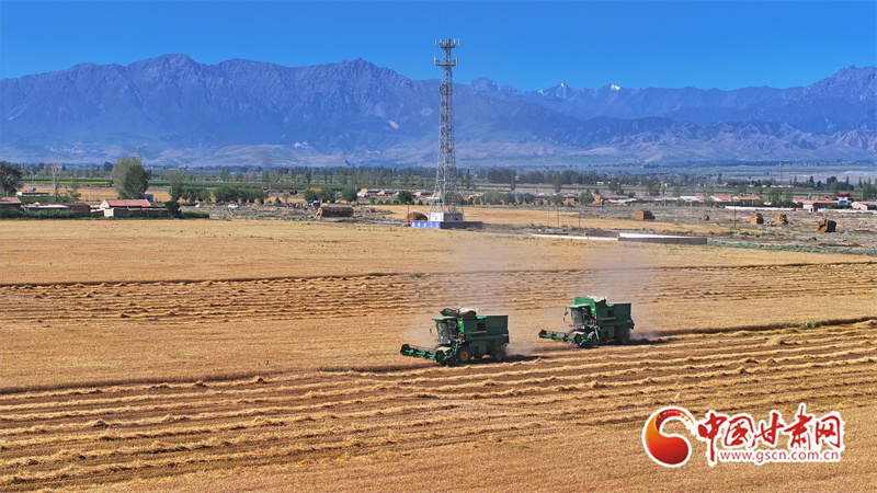 眼下,位于祁連山下的民樂縣南古鎮(zhèn)毛城村800畝連片小麥種植基地上,機(jī)聲隆隆,農(nóng)機(jī)手們駕駛收割機(jī)穿梭往返麥田之中搶收小麥,一派忙碌的豐收景象。近期,隨著民樂縣沿祁連山冷涼山區(qū)小麥迎來成熟季,民樂縣種植的26萬畝小麥進(jìn)入了繁忙的收割期。