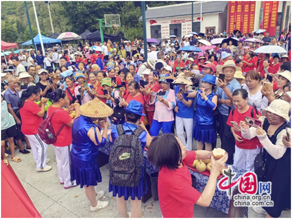 “今天的活動非常熱鬧,我聽說補戈村的金秋梨好吃,所以今天特地來嘗一下,真的是又大又甜,我啃了幾大口了都還沒吃完……”坪場上,游客彭秀芳興奮地向周圍的人描述著補戈金秋梨的甜美。