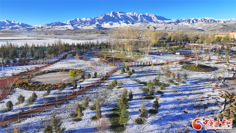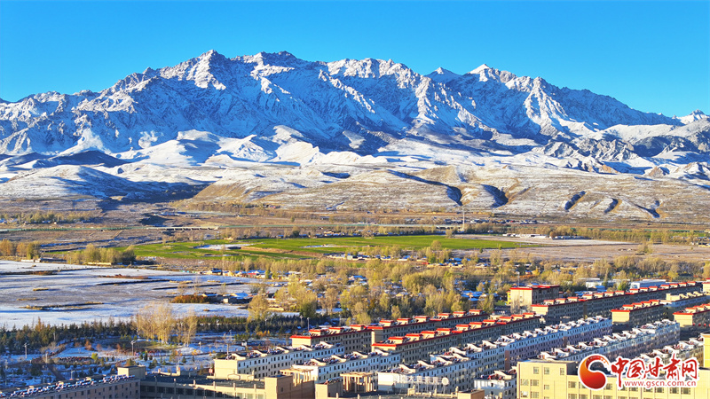 10月22日,雪后初晴的張掖市民樂(lè)縣,連綿起伏的祁連山被皚皚白雪覆蓋,整個(gè)縣城一片銀裝素裹,在晨曦的照射下,呈現(xiàn)出一幅多姿多彩、生態(tài)和諧的美麗畫(huà)卷。