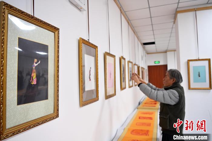 11月19日,“蘭州剪紙”非遺傳承人李自新、李麟桐剪紙藝術(shù)展在甘肅省蘭州市開(kāi)幕,展出以敦煌壁畫(huà)、隴上風(fēng)物等為題材,精心創(chuàng)作的剪紙作品。圖為展出的剪紙作品。中新社記者 九美旦增 攝