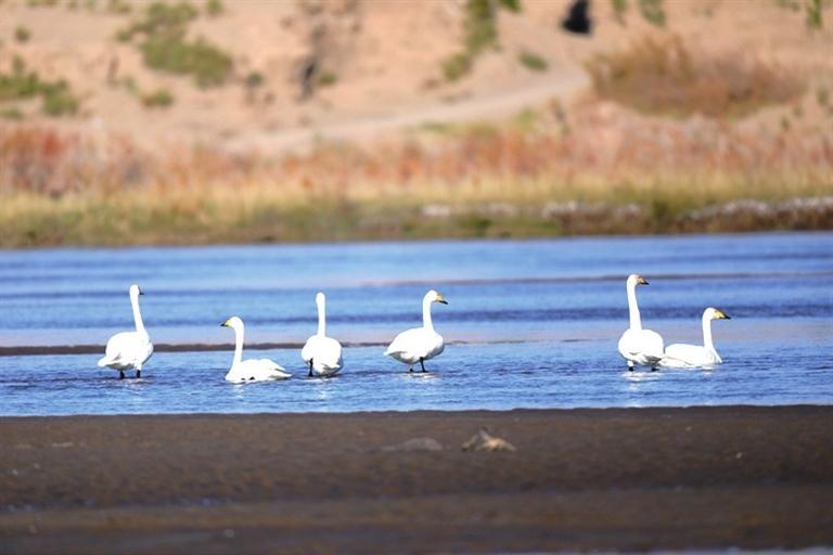 近日,高臺(tái)縣黑河濕地多次監(jiān)測(cè)到大天鵝種群,它們的翩翩降臨,標(biāo)志著天鵝一年一度的越冬之旅正式開(kāi)啟。 大天鵝是雁形目鴨科天鵝屬鳥(niǎo)類(lèi),又稱黃嘴天鵝,全身潔白,僅頭稍沾棕黃色;喙黑色,上喙基部黃色,喙端黑色;跗跖、蹼、爪也為黑色,是國(guó)家二級(jí)保護(hù)動(dòng)物。天鵝對(duì)棲息地的選擇極為苛刻,它們的到來(lái)是高臺(tái)縣黑河濕地生態(tài)環(huán)境質(zhì)量?jī)?yōu)良的有力證明。