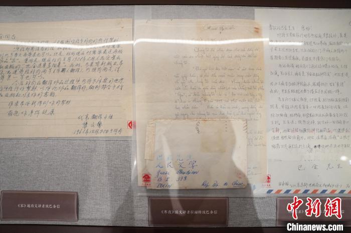 圖為巴金與各國翻譯者的書信展示。中新社記者 張亨偉 攝