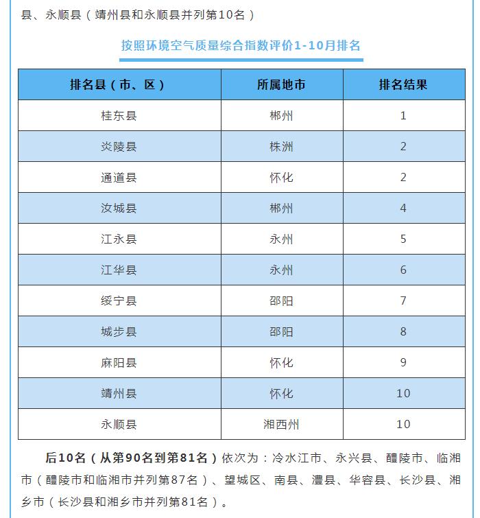 原標題:10月湖南環(huán)境空氣質(zhì)量:湘西張家界位居前茅