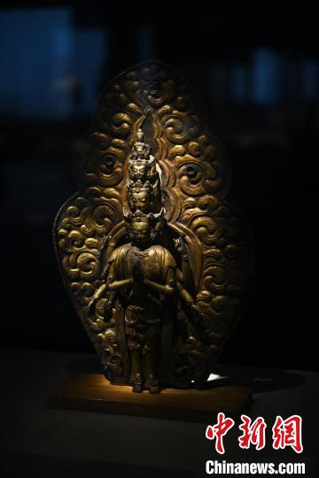 11月28日,甘肅省敦煌市,敦煌研究院敦煌石窟文物保護研究陳列中心《披沙揀金——敦煌研究院館藏文物擷英展》中的十一面觀音像。該展由敦煌研究院主辦,2024年下半年煥新布展,展出了不同類型館藏文物,通過這些文物蘊含的豐富歷史信息,展現(xiàn)了敦煌文化的多元與包容,勾勒不同文明偕行共進的歷史脈絡。中新社記者 李亞龍 攝