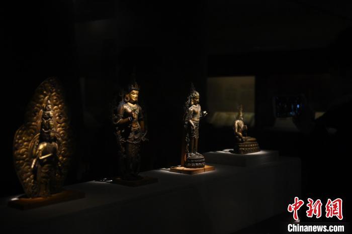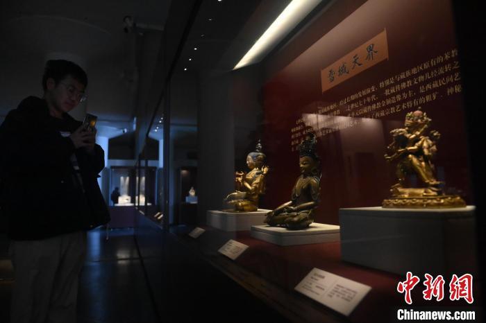11月28日,甘肅省敦煌市,敦煌研究院敦煌石窟文物保護研究陳列中心《披沙揀金——敦煌研究院館藏文物擷英展》中的勝樂金剛像。該展由敦煌研究院主辦,2024年下半年煥新布展,展出了不同類型館藏文物,通過這些文物蘊含的豐富歷史信息,展現(xiàn)了敦煌文化的多元與包容,勾勒不同文明偕行共進的歷史脈絡。中新社記者 李亞龍 攝