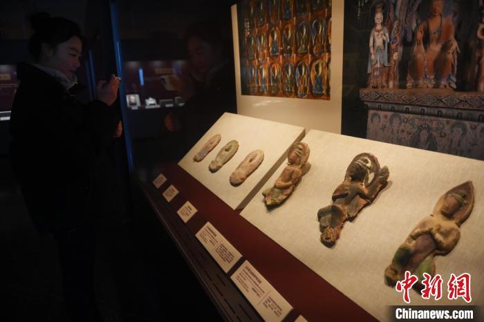 11月28日,甘肅省敦煌市,敦煌研究院敦煌石窟文物保護研究陳列中心,游客拍攝《披沙揀金——敦煌研究院館藏文物擷英展》。該展由敦煌研究院主辦,2024年下半年煥新布展,展出了不同類型館藏文物,通過這些文物蘊含的豐富歷史信息,展現(xiàn)了敦煌文化的多元與包容,勾勒不同文明偕行共進的歷史脈絡。中新社記者 李亞龍 攝