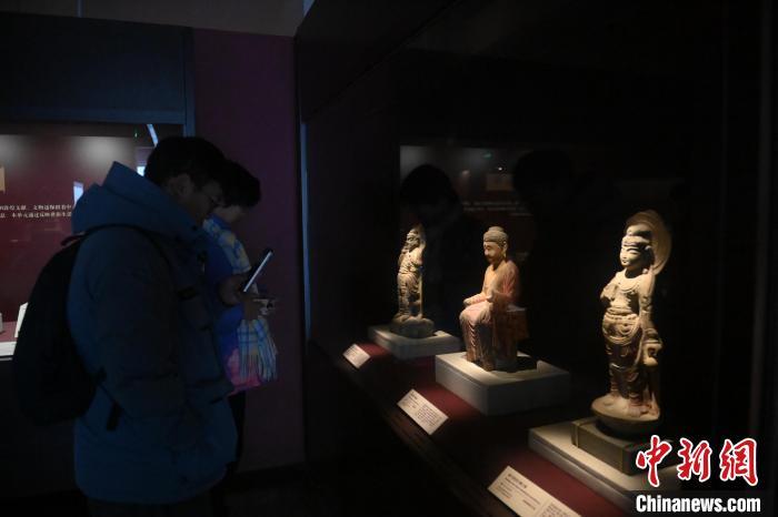 11月28日,甘肅省敦煌市,敦煌研究院敦煌石窟文物保護研究陳列中心,游客參觀《披沙揀金——敦煌研究院館藏文物擷英展》中的禪定佛石雕像。該展由敦煌研究院主辦,2024年下半年煥新布展,展出了不同類型館藏文物,通過這些文物蘊含的豐富歷史信息,展現(xiàn)了敦煌文化的多元與包容,勾勒不同文明偕行共進的歷史脈絡。中新社記者 李亞龍 攝
