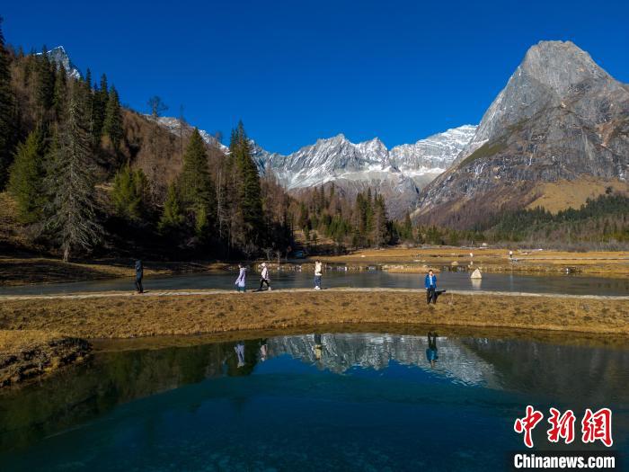 12月2日,位于四川省阿壩州小金縣的四姑娘山雙橋溝吸引游客游覽。隨著冬季到來(lái),四姑娘山雙橋溝多座山峰被皚皚白雪覆蓋,紅葉、雪山倒映在清澈的湖面形成一幅美麗畫卷,冰雪旅游逐漸火熱。中新社記者 張浪 攝