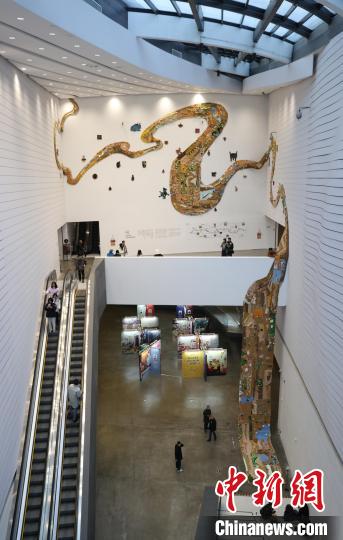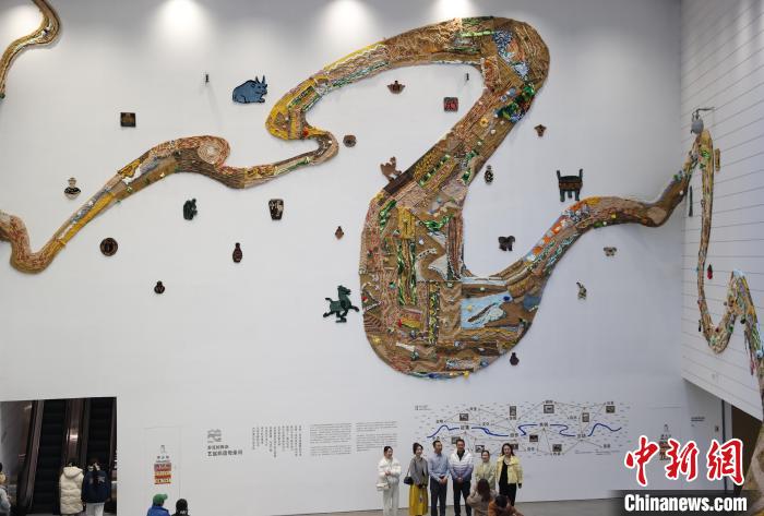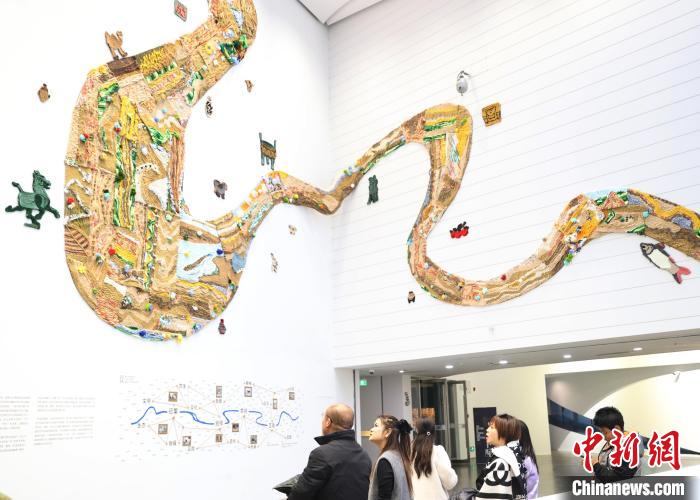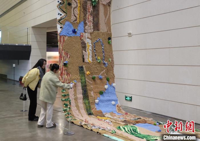 12月8日,市民在寧夏銀川當(dāng)代美術(shù)館欣賞“奔流的舞姿:藝起織造母親河”藝術(shù)展。當(dāng)日,“奔流的舞姿:藝起織造母親河”公益項(xiàng)目藝術(shù)展在銀川當(dāng)代美術(shù)館正式對(duì)公眾開(kāi)放。該項(xiàng)目匯聚了黃河兩岸200余位織手的巧作,按照黃河特點(diǎn)和視覺(jué)審美拼接和織造,織造出一個(gè)極具視覺(jué)效果的“大河”,通過(guò)藝術(shù)的橋梁,展示奔涌黃河的優(yōu)美舞姿和不息精神,同時(shí)激發(fā)社會(huì)各界對(duì)黃河生態(tài)保護(hù)的共識(shí)與行動(dòng)。中新社記者 于晶 攝