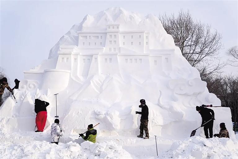 從滑雪場激情馳騁之后,便前往棲云田園小鎮(zhèn)。這里有著豐富多彩的冰雪活動(dòng),雪雕區(qū)里形態(tài)各異、栩栩如生的雪雕作品令人嘆為觀止。