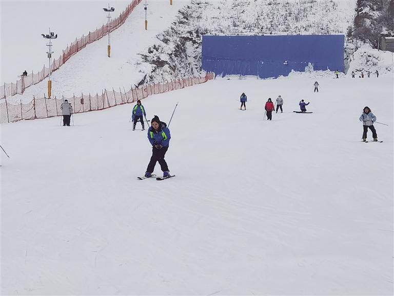 接著來到興隆山滑雪場,這里是冰雪運(yùn)動(dòng)愛好者的歡樂天地?;﹫鼋?jīng)理賈青云介紹,該滑雪場占地超400畝,擁有5條初、中級滑雪道,是中初級滑雪愛好者的樂園,今年全新打造的兩萬平方米豪華“戲雪樂園”更是引人注目。“開業(yè)不到一個(gè)月,已接待游客一萬多人,周末日均客流量超一千,平日也有四、五百人,滑雪場可同時(shí)容納2000人滑雪。”賈青云表示,滑雪場近期推出了優(yōu)惠活動(dòng),原價(jià)128元的門票現(xiàn)只需88元,包含滑雪服和存衣柜的使用。值得一提的是,經(jīng)過改造升級后的滑雪場加入了波西米亞風(fēng)格,設(shè)有拍照打卡地和咖啡廳,成為年輕消費(fèi)者熱衷的網(wǎng)紅打卡點(diǎn),游客在此不僅能滑雪,還能享受火鍋、烤肉等美食,體驗(yàn)別樣的冬日休閑時(shí)光。