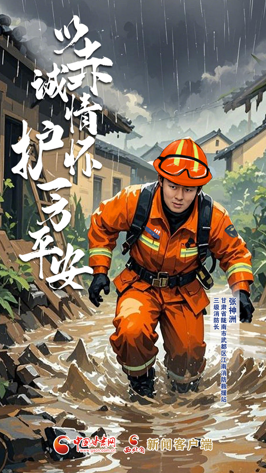 手繪海報|甘肅省隴南市武都區(qū)江南消防救援站三級消防長張神洲:以赤誠情懷 護(hù)一方平安