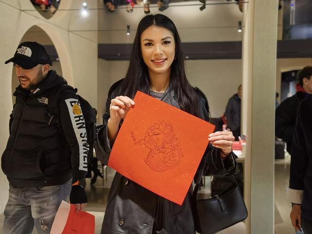2024年12月31日晚,斯洛伐克游客在“上海新春第一游”體驗(yàn)非遺拓印。新華社記者 陳愛平 攝