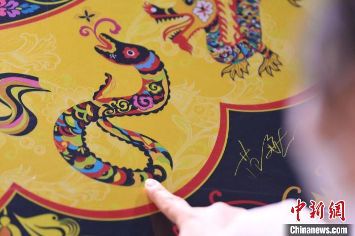 1月10日,在甘肅省敦煌市敦煌畫院內(nèi),游人參觀由敦煌畫院設(shè)計(jì)授權(quán)的中國(guó)郵政《敦煌福蛇》極限型明信片。中國(guó)郵政《敦煌福蛇》極限型明信片從敦煌壁畫里的藻井汲取靈感,集合敦煌紋樣、民藝剪紙等中國(guó)傳統(tǒng)藝術(shù)內(nèi)容,以春萌蛇、夏長(zhǎng)蛇、秋實(shí)蛇、冬藏蛇對(duì)應(yīng)著四季祝福。中新社記者 李亞龍 攝