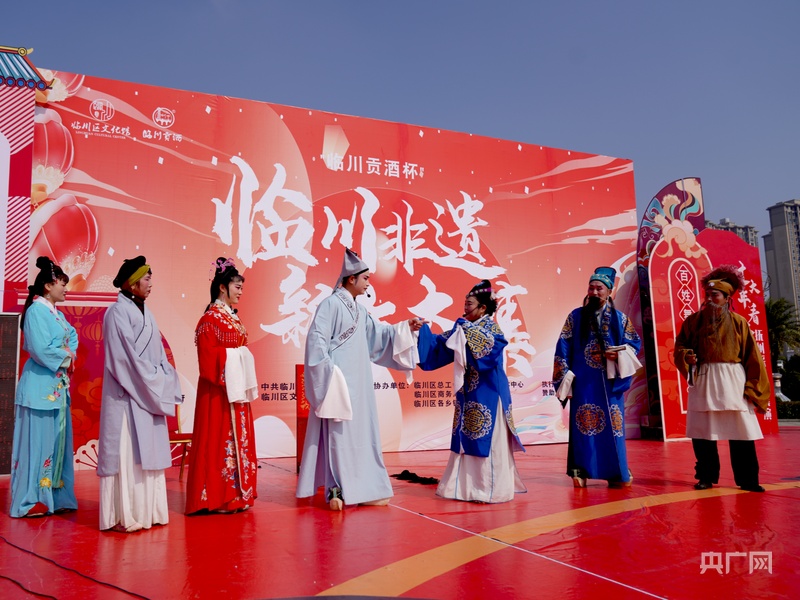 演員們身著艷麗的戲服,先后表演了《王媽媽愛雞》《游園驚夢》等節(jié)目。撫州采茶戲是江西臨川傳統(tǒng)戲曲文化的重要組成部分之一,是在明代茶燈戲的基礎上,吸取當?shù)孛窀栊≌{(diào)發(fā)展而成,據(jù)《臨川縣志》記載,迄今已有四百余年的歷史。