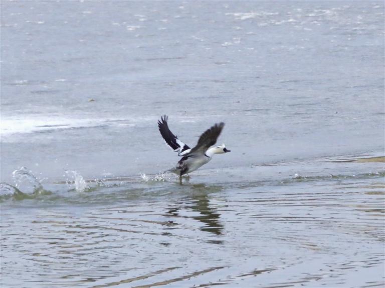 斑頭秋沙鴨是我國“三有”保護(hù)動(dòng)物,它還有一個(gè)萌萌的名字,叫“熊貓鴨”。瞧,它那黑白相間的羽毛,眼睛周圍和熊貓一樣,像戴了一副墨鏡,時(shí)而潛入水下追捕魚兒,時(shí)而與同伴嬉戲,時(shí)而振翅飛翔,可愛活潑的模樣在水面上格外顯眼。