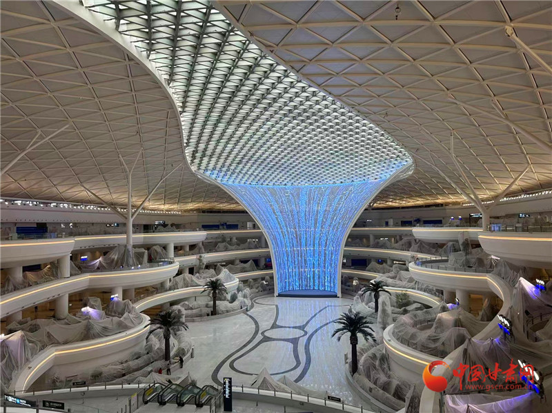 目前,口岸查驗(yàn)設(shè)施基本完成;綜合交通中心工程土建安裝、裝飾裝修工程全部完成,容納3520個(gè)停車位;信息大樓工程核心機(jī)房設(shè)備、弱電系統(tǒng)、裝修全部完成;機(jī)場業(yè)務(wù)用房、安檢護(hù)衛(wèi)用房、值班宿舍、國際國內(nèi)貨運(yùn)庫等附屬工程全面建成;綜合管廊、場區(qū)道路全線貫通;如意廣場、主進(jìn)場道路等場區(qū)綠化苗木基本栽植完成。