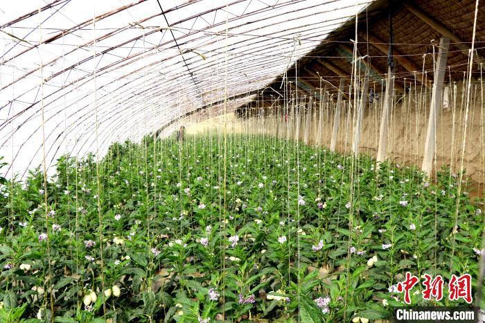 圖為民勤縣溫室人參果種植基地,一株株人參果生長(zhǎng)茂盛,葉片翠綠欲滴。(資料圖)馬愛彬 攝