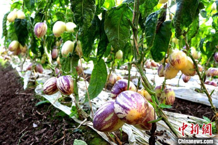 人參果屬茄科多年生草本植物,耐瘠薄、抗寒冷、抗鹽堿,是一種生態(tài)適應(yīng)性較強(qiáng)的草本植物。2007年,民勤縣引入人參果,重點(diǎn)以日光溫室種植方式為主,經(jīng)過十多年的試驗(yàn)示范和逐步發(fā)展,現(xiàn)生產(chǎn)規(guī)模達(dá)到2.1萬畝,占全國(guó)設(shè)施種植規(guī)模的30%以上,成為全縣日光溫室生產(chǎn)的主導(dǎo)品種,當(dāng)?shù)剞r(nóng)業(yè)產(chǎn)業(yè)發(fā)展的一張亮麗名片。