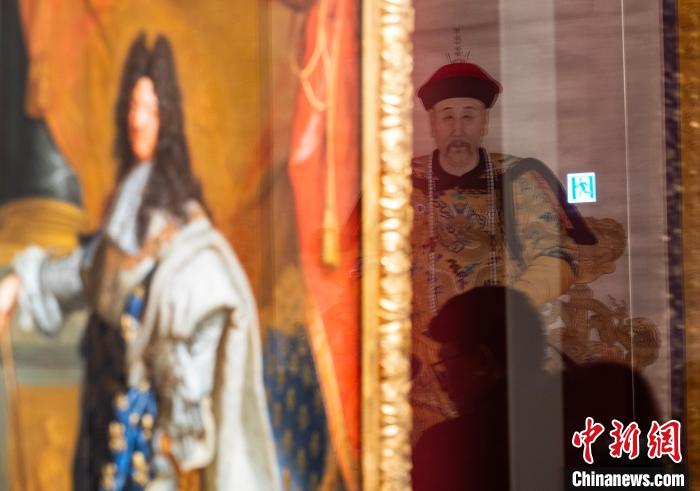 2月19日,正在香港故宮文化博物館持續(xù)展出的“當(dāng)紫禁城遇上凡爾賽宮——十七、十八世紀中法文化交流”展部分珍品煥新亮相,《康熙帝戎裝像》《龐巴杜夫人像》等約20件故宮博物院、法國凡爾賽宮的珍貴展品與公眾見面,繼續(xù)“講述”中法文化之交。圖為展廳玻璃映襯的故宮博物院藏《雍正帝朝服像》(右)和法國《路易十四肖像》。中新網(wǎng)記者 侯宇 攝