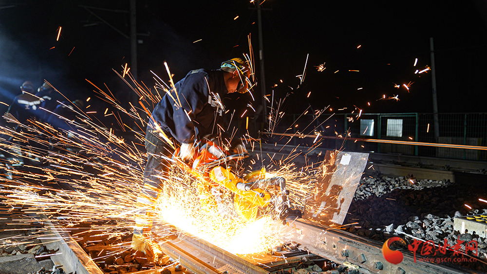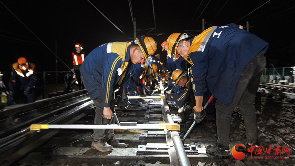 4月13日21時(shí)30分,位于河西走廊的蘭新鐵路截河壩站人頭攢動(dòng)、燈火通明,蘭州鐵路局武威工務(wù)段組織80余名干部職工對(duì)站內(nèi)3號(hào)道岔軌件進(jìn)行更換升級(jí)。