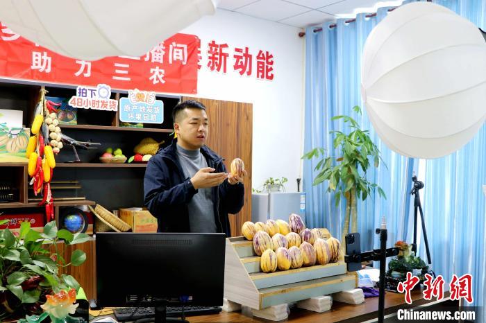 “民勤人參果,清甜多汁,營(yíng)養(yǎng)豐富,五斤大果僅售29塊9。”12日晚,甘肅省武威市民勤縣“95后”小伙張煜文在自家的直播工作室對(duì)著鏡頭展示新鮮的人參果,同時(shí)回答直播間里消費(fèi)者的各種問題。