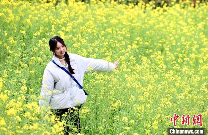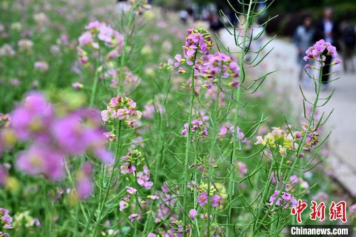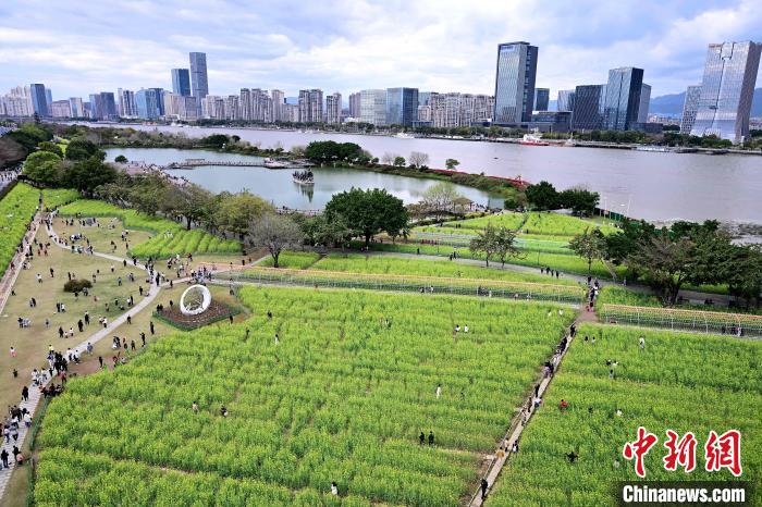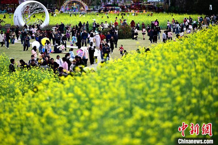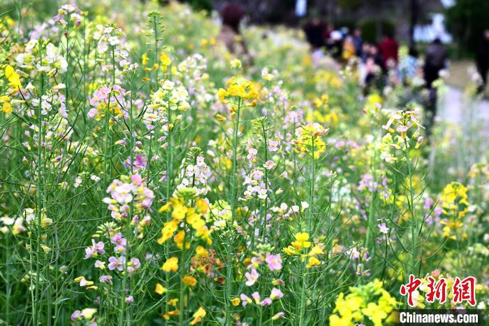 3月16日,游客在公園觀賞彩色油菜花。春日,福州花海公園魯冰花、小蒼蘭、油菜花等鮮花盛放,吸引了許多民眾前來漫步賞花,享受春天美好時(shí)光。中新社記者 張斌 攝