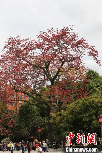 眼下,一株被譽為“中國最美木棉”的超350歲木棉樹以及周邊幾株木棉樹進入盛花期,璀璨的紅棉在中山紀念堂藍瓦朱檐的映襯下,共同構成了一道美麗的風景線,吸引眾多市民和游客駐足“打卡”。不少攝影愛好者還架起專業(yè)設備捕捉盛景,定格與木棉花的春日邂逅。