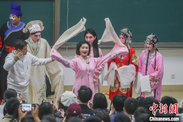 2024年3月,江西南昌,南昌大學(xué)贛劇藝術(shù)鑒賞課堂上,國家級非物質(zhì)文化遺產(chǎn)代表性項目“贛劇”代表性傳承人陳俐正在給學(xué)生上課。(資料圖)劉力鑫 攝