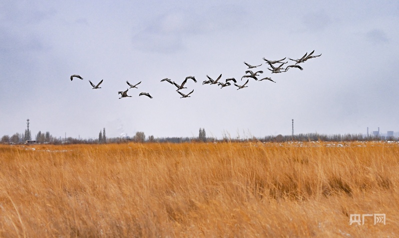 千只灰鶴在嘉峪關(guān)草湖國(guó)家濕地公園振翅高飛(央廣網(wǎng)發(fā) 嘉峪關(guān)市融媒體中心供圖)
