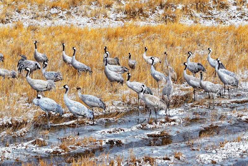 在嘉峪關(guān)草湖國(guó)家濕地公園休整的灰鶴(央廣網(wǎng)發(fā) 嘉峪關(guān)市融媒體中心供圖)