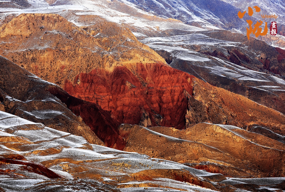 近日,一場春雪悄然飄落。山間、鄉(xiāng)村和城市像似披上薄薄的輕紗,更加詩意盎然。本就有著獨特韻味的山巒,在白雪的映襯下,層理交錯、色彩斑斕,顯得格外艷麗多彩。