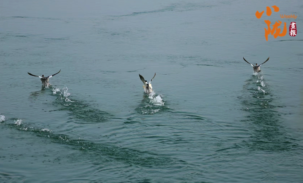春雪飄灑在黃河兩岸長詩短歌般的山水之間,將黃河兩岸的溝壑峰巒寫進一首瑞雪兆豐年的詩卷。炳靈湖靜靜地沉默著,遠處的山巒在雪色中若隱若現(xiàn),宛如一幅未完成的山水畫。偶爾,一艘快艇快速掠過水面,畫卷頓時活了,溫暖了這片寂靜的天地。