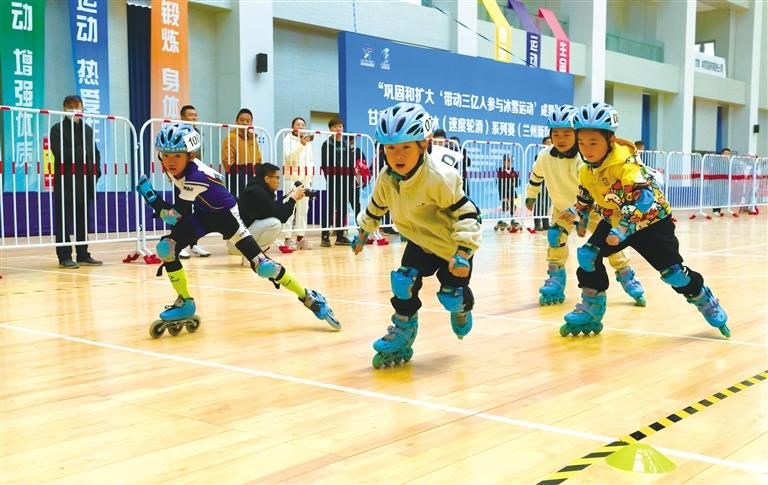 4月12日,“鞏固和擴(kuò)大‘帶動(dòng)三億人參與冰雪運(yùn)動(dòng)’成果”甘肅省速度滑冰(速度輪滑)系列賽(蘭州新區(qū)站)在甘肅省體育館開賽。