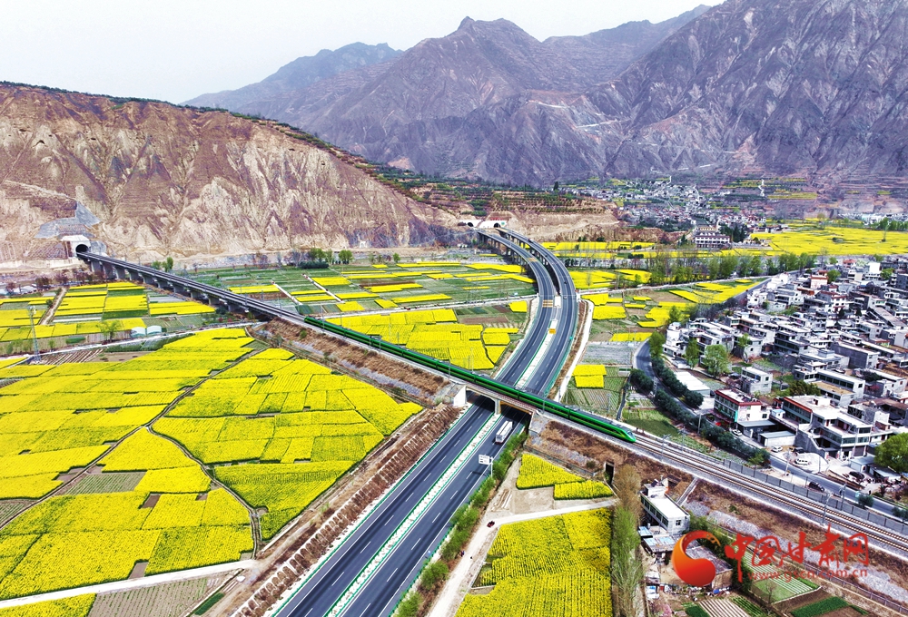 4月10日,列車(chē)在蘭渝鐵路宕昌縣沙灣鎮(zhèn)段附近行駛,穿行于花海之間。現(xiàn)代交通動(dòng)脈與原始鄉(xiāng)野在此默契共生,火車(chē)轟隆駛過(guò),為春日畫(huà)卷增添了別樣的景致。