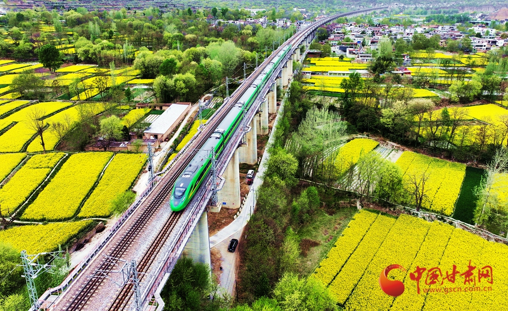 近日,隨著氣溫回升,武都、宕昌白龍江沿岸的油菜花競(jìng)相綻放,迎來(lái)最佳觀賞期,蘭渝鐵路列車(chē)在花海中穿梭,宛如一幅絕美的春日畫(huà)卷。