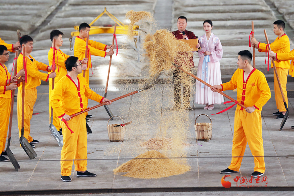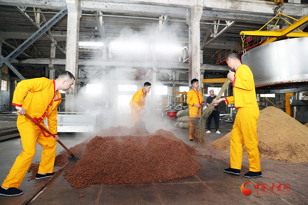 開(kāi)釀儀式盡顯古樸,釀酒傳承人身著吉服,誦讀酒經(jīng)與祖訓(xùn):“德不立者不釀,心不誠(chéng)者不釀……”并撒糠祈福,敬謝酒祖,隨著開(kāi)釀聲起,酒匠們有條不紊開(kāi)動(dòng),一锨一鏟,一甑一耙,配合默契,仿佛時(shí)光倒流至千年前。